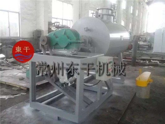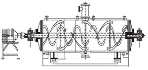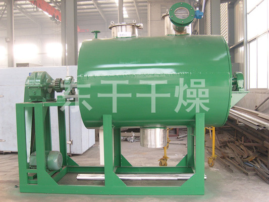 本機(jī)是一種新穎臥式間歇式真空干燥設(shè)備,濕物料經(jīng)傳導(dǎo)蒸發(fā),帶有刮板攪拌器不斷清除熱面上的物料,并在容器內(nèi)推移形成循環(huán)流,水份蒸發(fā)后由真空泵抽出。